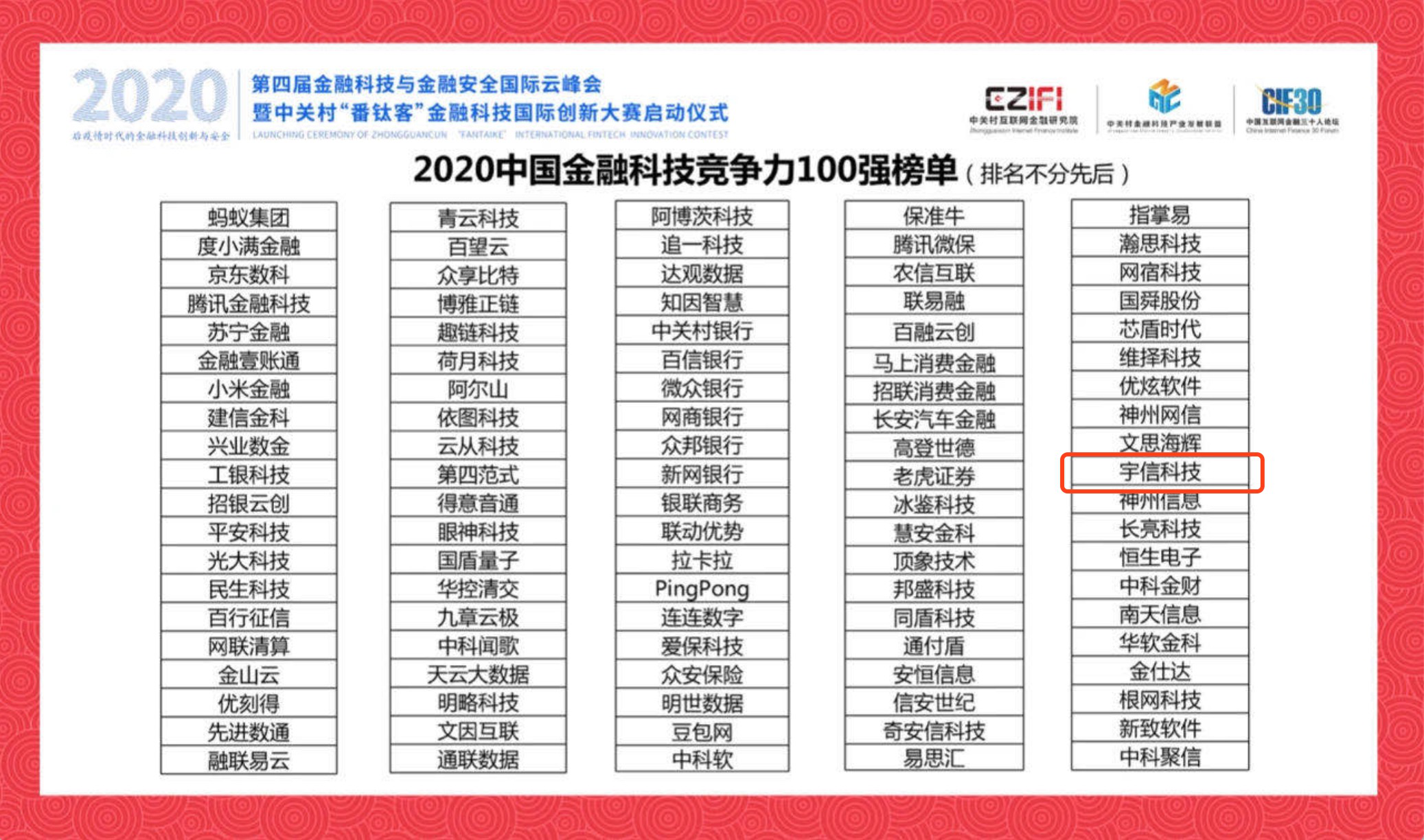 被稱為行業“風向標”,“中國金融科技競爭力100強”是中國金融科技行業最具影響力榜單之一。它的發起者之一,中關村互聯網金融研究院是中國目前互聯網金融領域首家綜合性研究機構。今年能入榜的都是2019年-2020年一季度中國金融科技各領域內競爭力強、資本市場認可度高、具有代表性的企業。
