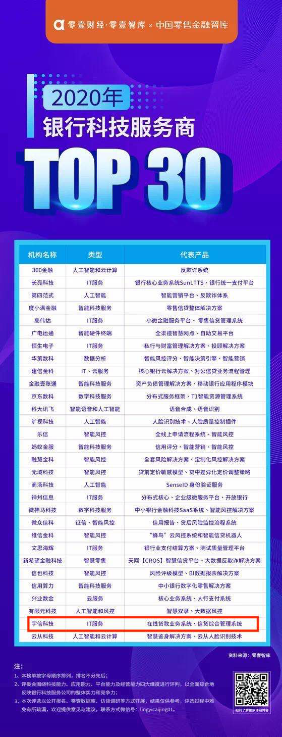●榮膺“2020年銀行科技服務商TOP 30”;