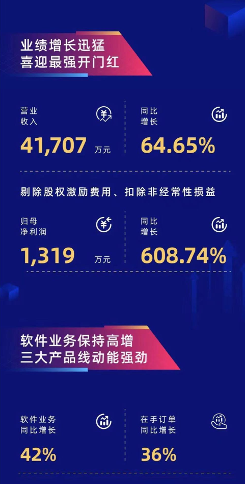 4月27日晚,宇信科技對外披露2021年第一季度報告。數據顯示,宇信科技喜迎上市以來“最強開門紅”。一季度,公司實現營業收入41,707萬元,同比增長64.65%,凈利潤受股權激勵費用支出影響出現虧損,但剔除股權激勵費用、扣除非經常性損益的歸母凈利潤1,319萬元,相較于去年同期大幅增長608.74%,該增速和利潤水平也創造了公司上市后的一季報最佳水平。