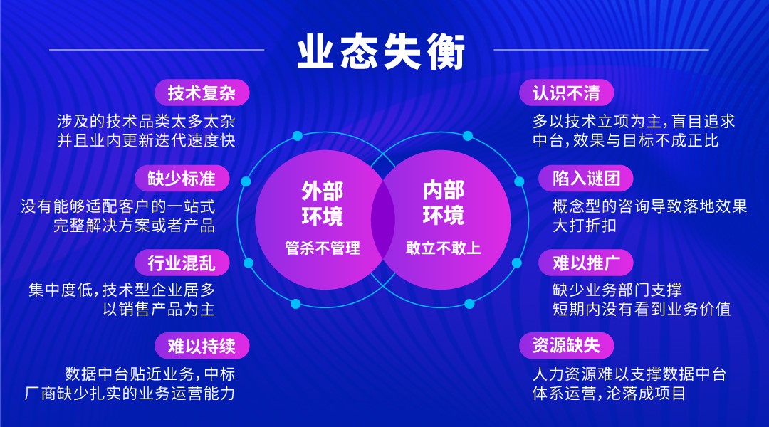 數據中臺的產品需求經歷過“全家桶”模式與“八國聯軍”模式。“全家桶”模式在很長一段時間內從快速落地的角度來說起到了非常顯著的效果,能夠完成從基礎平臺、數據開發、數據治理到數據服務等一系列的流程串通,理念先進,并且其中部分一體化的產品思路對傳統的開發模式起到了顛覆的作用,為新一代數據體系的建設指引了方向。“八國聯軍”模式是在供需不足、市場戰亂時出現的,把“全家桶”分拆后,從技術門檻較低的地方著手,開展數據中臺產品的創業,特定時期這種模式也為中臺的產品發展做出了貢獻。無論是哪種模式,都存在一定的歷史必然性,但同時也存在較多的問題,很難為客戶解決很多數據的實質需求問題,幫助客戶把中臺運營起來。